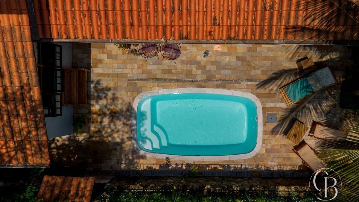 A área externa conta com piscina e espaço de jardim, ideais para momentos de descanso. A casa ainda oferece um espaço de escritório bem definido, perfeito para quem trabalha em home office, além de climatização em todos os ambientes.