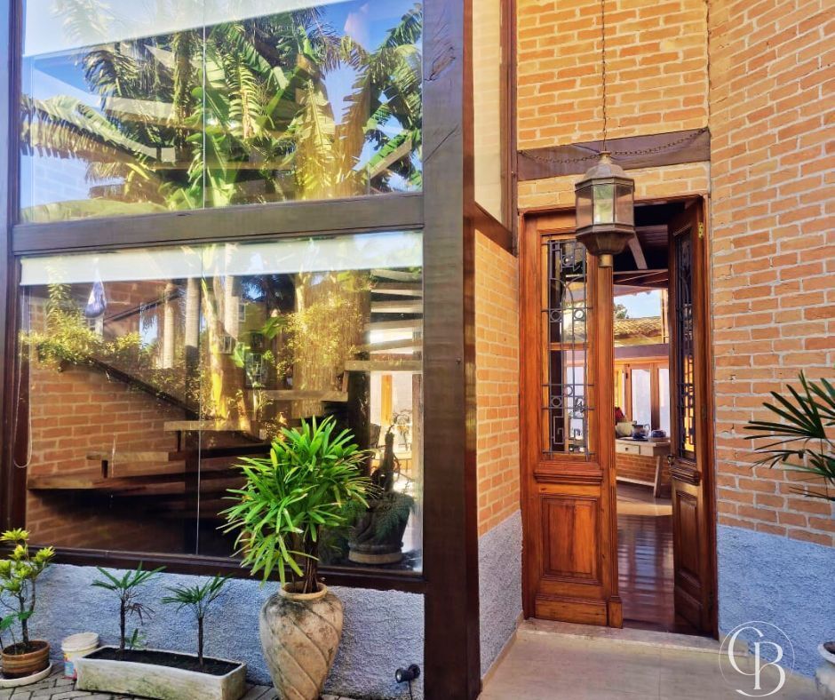 A casa é totalmente varandada, integrando os espaços internos à natureza ao redor. Na área social, destaque para a sala de estar integrada com a sala de jantar elegante e com o pé direito alto, no andar superior a sala de home com lareira, é perfeita para noites aconchegantes mesmo em dias mais frescos.